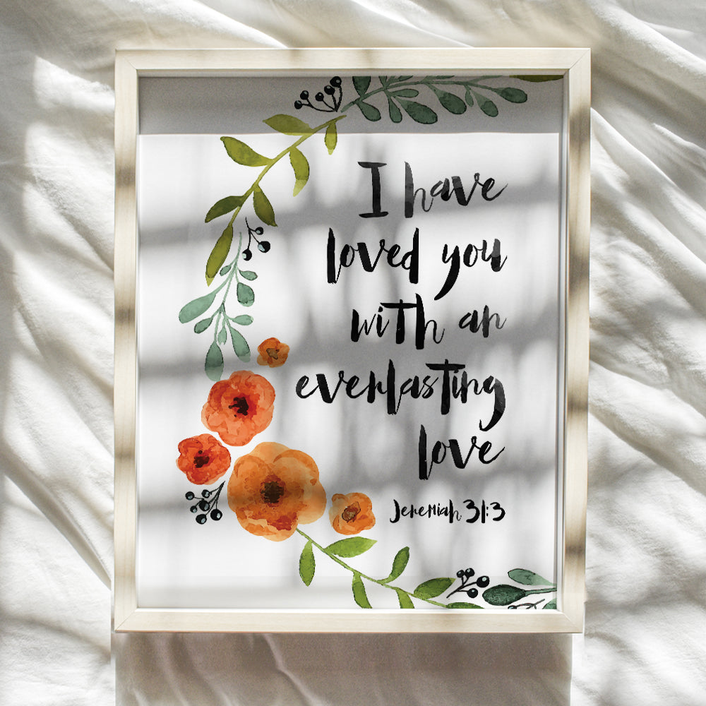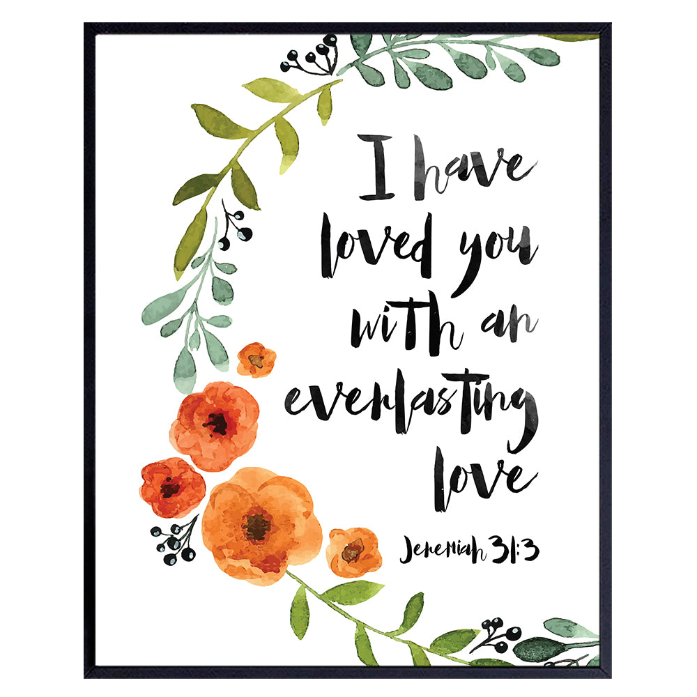 Love Bible Verse - Religious Christian Scripture Wall Art - Home Decor, Decoration for Bedroom, Living Room, Church - Romantic Gift for Women, Men, Couples, Anniversary - Green Orange 8x10 Picture