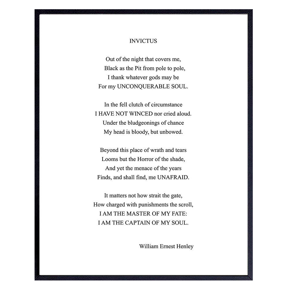 Motivational Invictus Poem Quote Wall Art Print - Inspirational Home Decor for Bedroom, Den, Office, Classroom or Dorm Room - Gift for Entrepreneurs, Teachers, Men, Teens, Kids - 8x10 Photo - Unframed