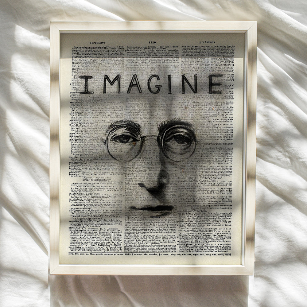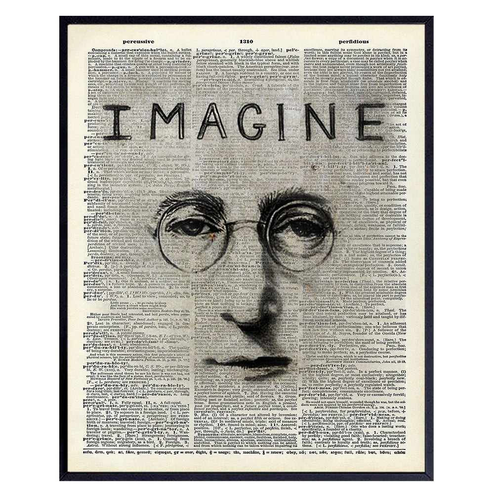 John Lennon Graffiti Upcycled Dictionary Wall Art Print - Great Gift For Beatles and 60’s Music, Street Mural Fans - Contemporary Home Decor - 8x10 Unframed Photo - Imagine