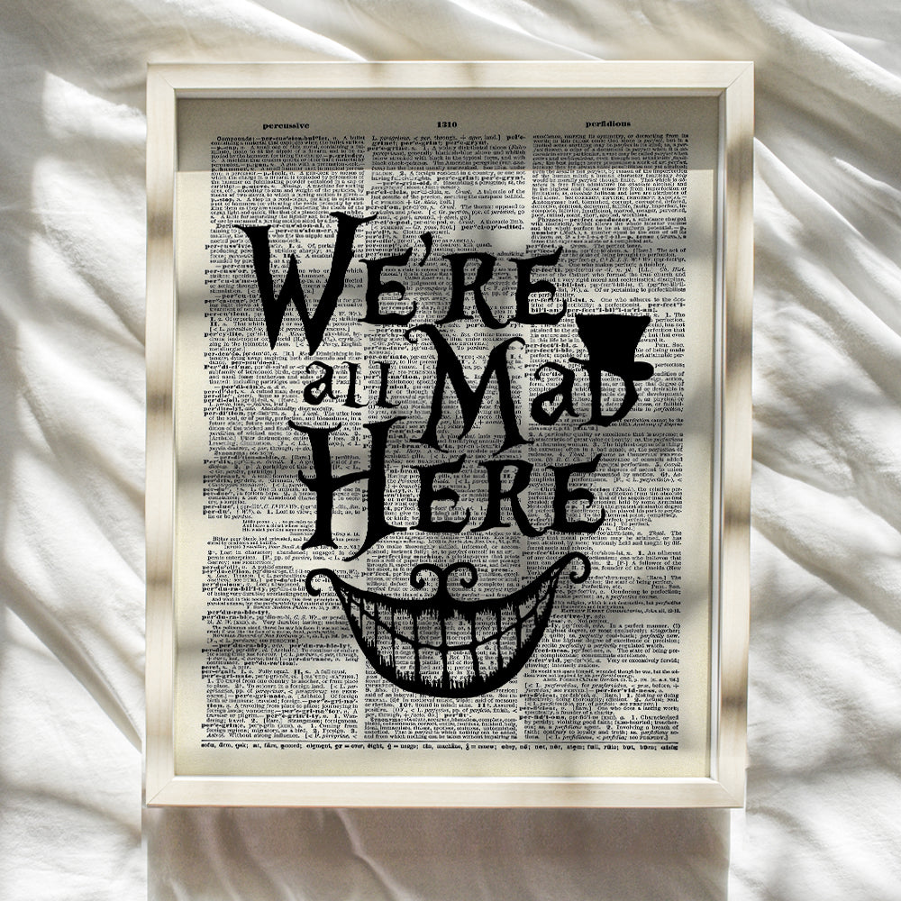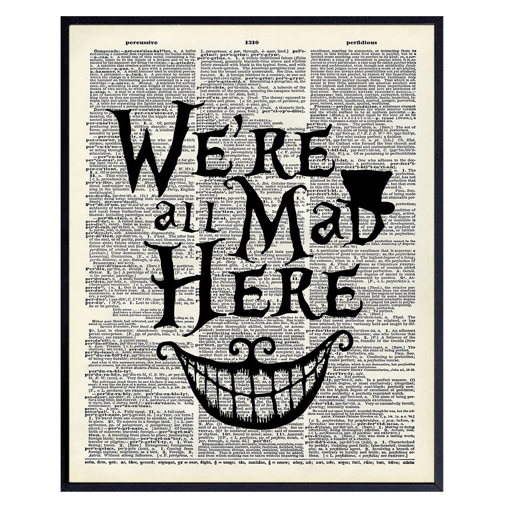 Alice Wonderland Dictionary Art print, Poster - Upcycled Wall Art Home Decor - Gift for Walt World, Fans - Unique Room decoration for Girl, Boy, Kids Bedroom - 8x10 Photo