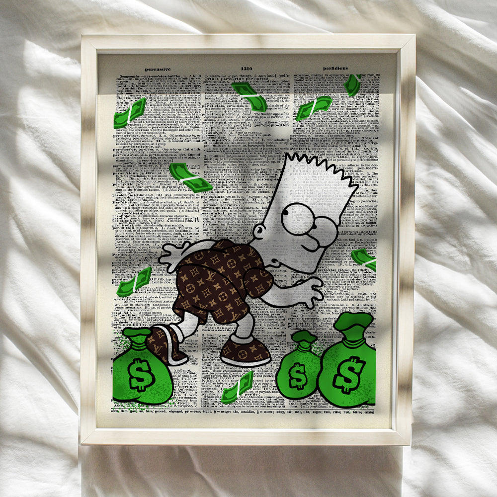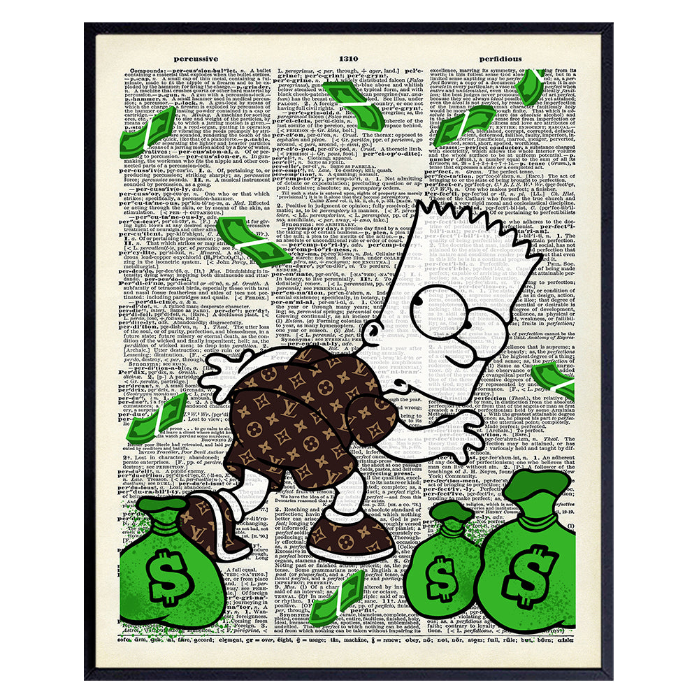 Graffiti Wall Art of Louis Vuitton - Bart Simpson Poster - Banksy Wall Art Set - LV Wall Decor - Money Decorations Wall Decor - Urban Wall Decor - Funny Street Art Mural for Alec Monopoly Fans