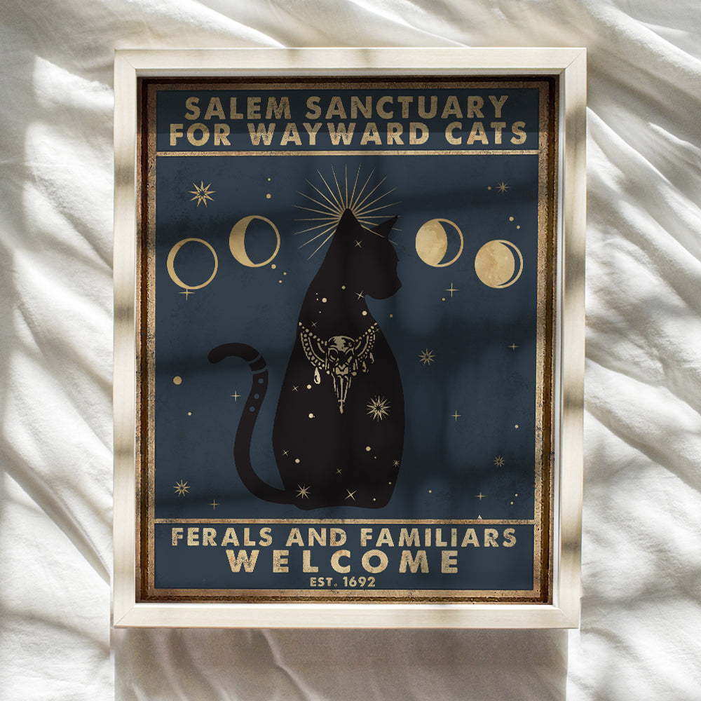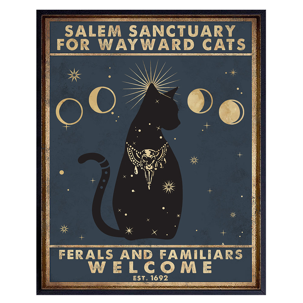 Yellowbird Art & Design Black cat Wall Art - Salem Sanctuary for Wayward Cats - Witchy Room Decor, Gifts - Pagan Decor - Celestial Decor - Wiccan, Wicca, Witch, Goth, Halloween Poster 8x10 UNFRAMED