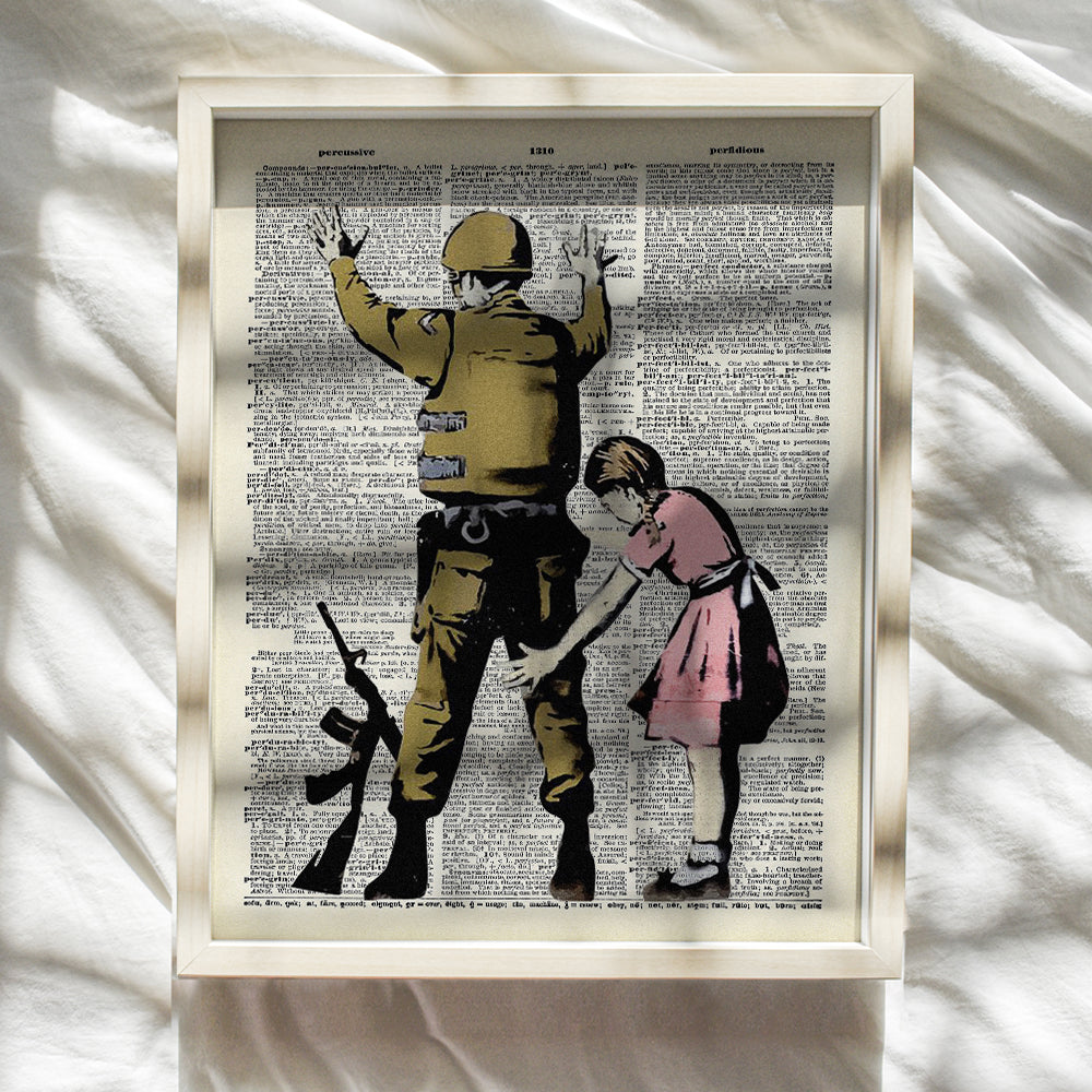 Banksy Soldier Graffiti Dictionary 8x10 Wall Decor Picture - Modern Art Decoration Poster for Home, Apartment, Office, Dorm, Living Room, Bedroom, Bathroom - Gift Contemporary Urban Street Mural Fan