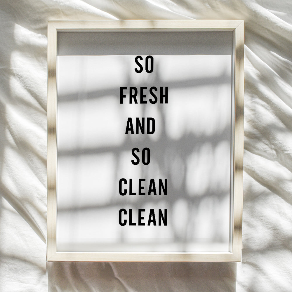 So Fresh and So Clean Clean Wall Art - Bathroom Wall Decor - Bathroom Wall Art - Funny Bathroom - Restroom Sign - Bath Wall Decor Art Poster Print - Chic Home Decor - Unique Gag or Housewarming Gift