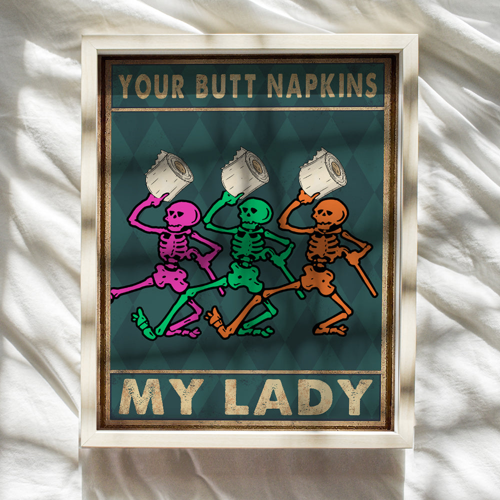 Your Butt Napkins My Lady - Bathroom Wall Art - Dancing Skeleton Decoration - Funny Bathroom Decor - Bathroom Wall Decor - Bath Wall Decor - Powder Room - Guest Bathroom - Restroom Sign